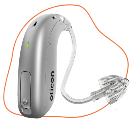 Dotés également d’un processeur externe derrière l’oreille. Dans ces solutions, le son est acheminé au tympan via un petit écouteur directement dans le conduit auditif externe.
